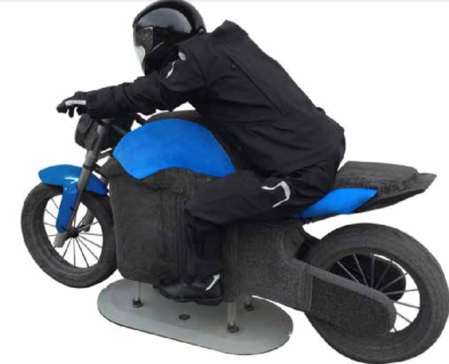 该摩托车模型与4activeSB和 4activeXB相匹 配。它的各种特征用于 测试雷达和摄像头系 统。假人可承受撞击, 不会造成很多损坏。为 了方便运输,假人,车 轮,前叉均可拆卸。