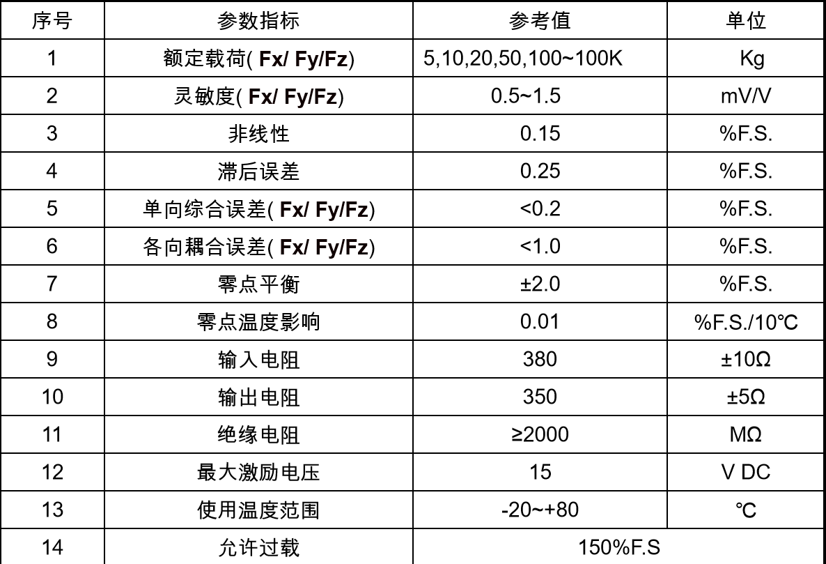 其他产品特性,请致电我公司技术人员(另可定制其它规格三轴力传感器)。