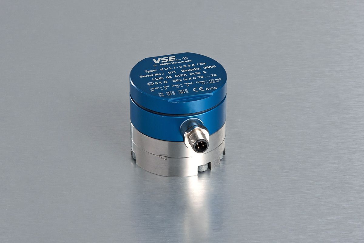 当流体流经流量计时,依照载波频率原理,和测量机构无接触的信号采集系统会在每个齿的转动时产生一个脉冲信号。VHM流量计可以提供单通道,双通道和四倍频的分辨率信号,通常是以NPN或者PNP的信号形式。
