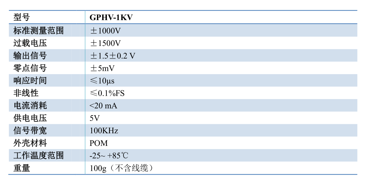 高电压传感器 GPHV-1KV,用于新能源汽车电池包的测量。利用霍尔器件原理,将输入端和输出端进行物理隔离,把高电压信号转化成低电压信号,同时满足数据采集设备的信号要求。默认量程±1000V,其他量程可定制。该传感器内部对电源和信号全隔离。传感器拥有可靠的短路保护措施,体积小,精度高。