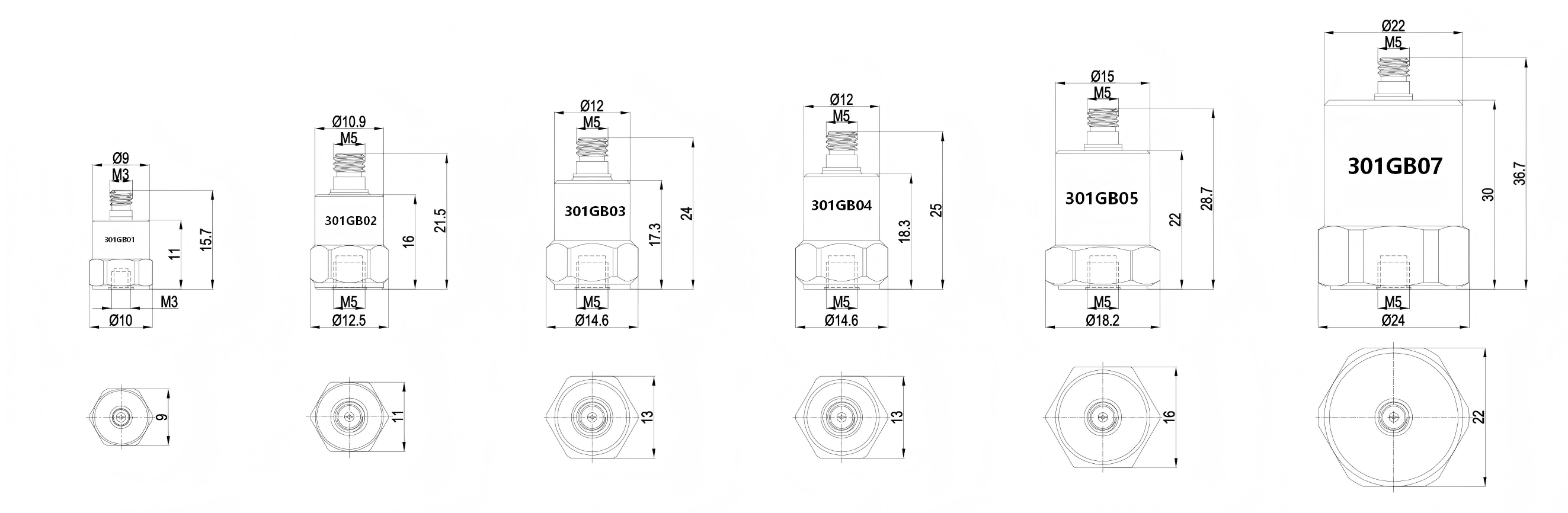 | 输出接头 尺寸(mm) 安装方式 | M3顶端 φ10×15.7 M3螺孔 | M5顶端 Φ12.5×21.5 M5螺孔 | M5顶端 φ14.6×24 M5螺孔 | M5顶端 Φ14.6×25 M5螺孔 | M5顶端 Φ18.2×28.7 M5螺孔 | M5顶端 Φ18.2×28.7 M5螺孔 | M5顶端 中24×36.7 M5螺孔 | M5顶端 Φ24×36.7 M5螺孔 | |||