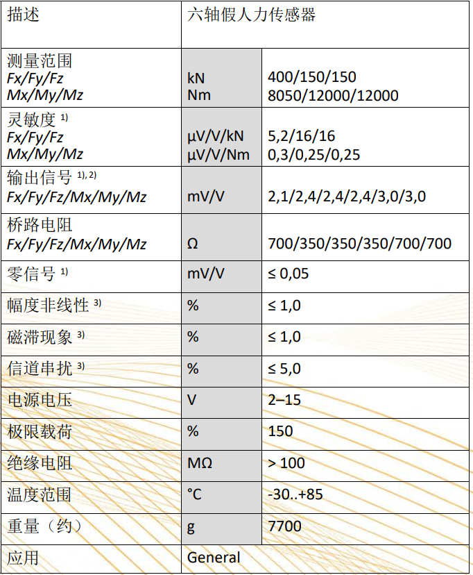 碰撞力墙单元,六轴Fx,Fy,Fz,Mx,My,Mz方向测量,量程可 以根据客户要求定制,非线性≤1%。重量根据客户要求的 量程有所不同。