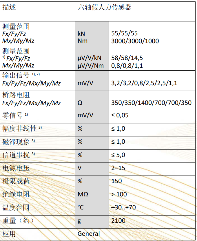 通用型六轴力传感器,可以测量碰撞测试中座椅受到的力 。六轴Fx,Fy,Fz,Mx,My,Mz方向测量,量程Fx=Fy=Fz=55KN,Mx=My=3000Nm,Mz=1000Nm。非线性 ≤1%。重量2100g。