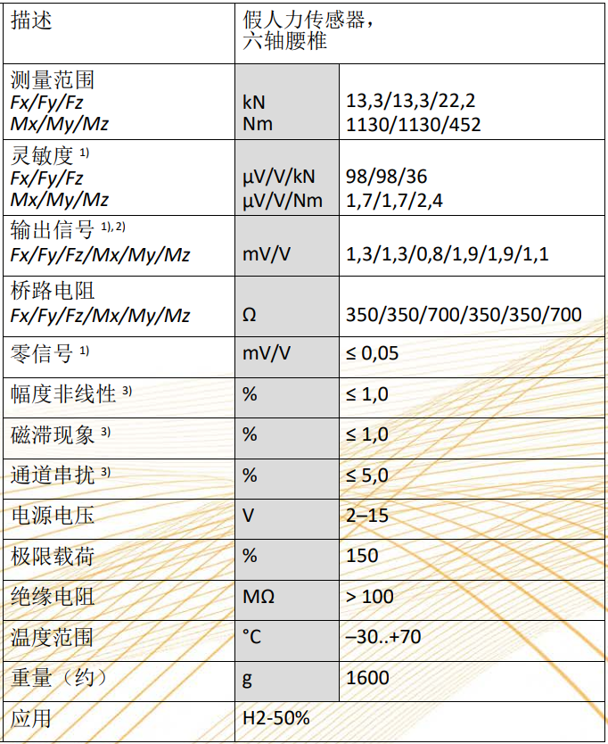 H2-50%,SIDIIs假人腰椎力传感器,六轴Fx,Fy,Fz,Mx,My,Mz方向测量,量程Fx=Fy=13.3KN,Fz=22.3KN,Mx=My=1130NM,Mz=450Nm ,非线性≤1%,重量1600g。