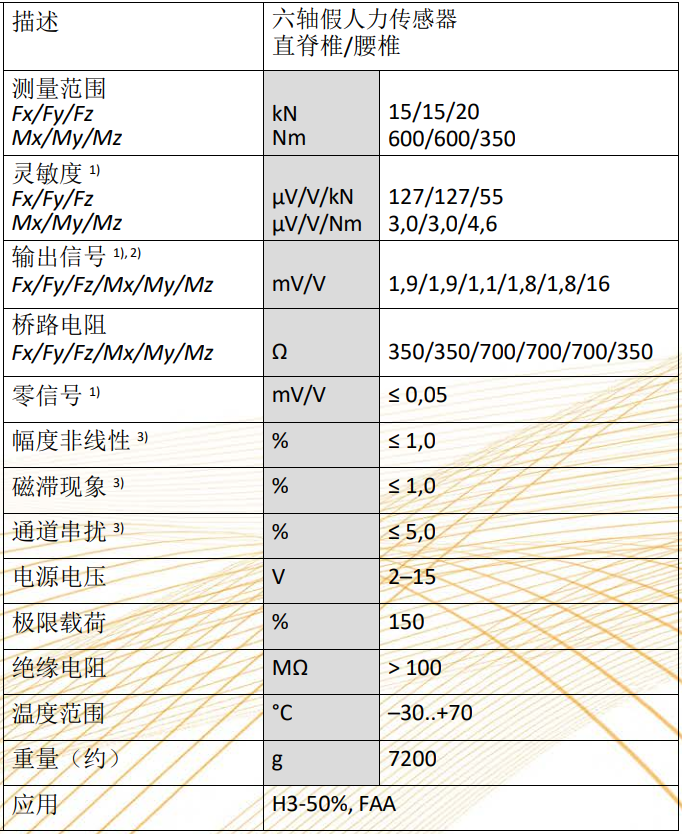H3-50%假人腰椎力传感器,六轴Fx,Fy,Fz,Mx,My,Mz方向 测量,等同于Denton型号5462J,量程Fx=Fy=15KN,Fz=20KN,Mx=My=600NM,Mz=350Nm ,非 线性≤1%,重量7200g。