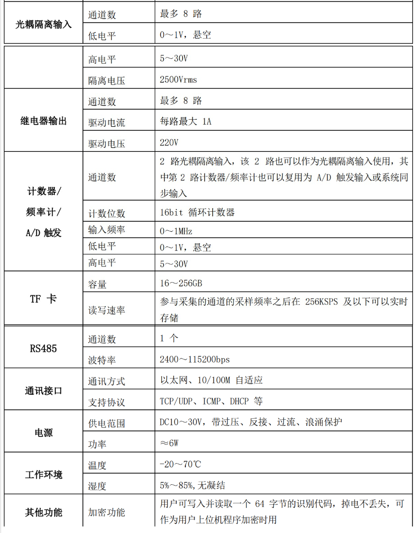产品特点: ➢ GPDAS 既可以按照采集计划把采集数据实时自动直接上传到云平台,也可以现场一台 GPDAS 或者多台 GPDAS 布置一个我们公司的边缘计算智能网关,然后由智能网关统一数据 管理运算之后,再上传到云平台。 ➢ GPDAS 无需外加各种调理转换模块就可以直接接振动、温度、转速、压力、位移、开关等各 种传感器输出的模拟信号,覆盖设备状态监测各种常用参量对应的传感器。 ➢ 我们可以提供从各种传感器->监控模块->边缘计算智能网关->定制特定的计算处理软 件等一揽子系统化的产品和服务。 ➢ 多台 GPDAS 通过 10/100M 自适应以太网连接到交换机,组建一个局域网,让信号采集点 扩展足够多,传输距离足够远。 ➢ 面板无任何操作旋钮开关,所有对采集仪的操作通过软件远程控制,外观小巧,且功能 完 整。 ➢ 每个产品都具备独立可设的 IP 地址、子网掩码、网关,通过修改相关参数,可直接插接 在任何一个现有的局域网内,设置后的参数直接保存在仪器内,掉电不丢失。 ➢ 可内置 TF 卡功能,具备离线采集功能,并且方便下载数据。 ➢ 匹配 WIN XP/WIN 7 操作系统下信号采集与控制测试软件。