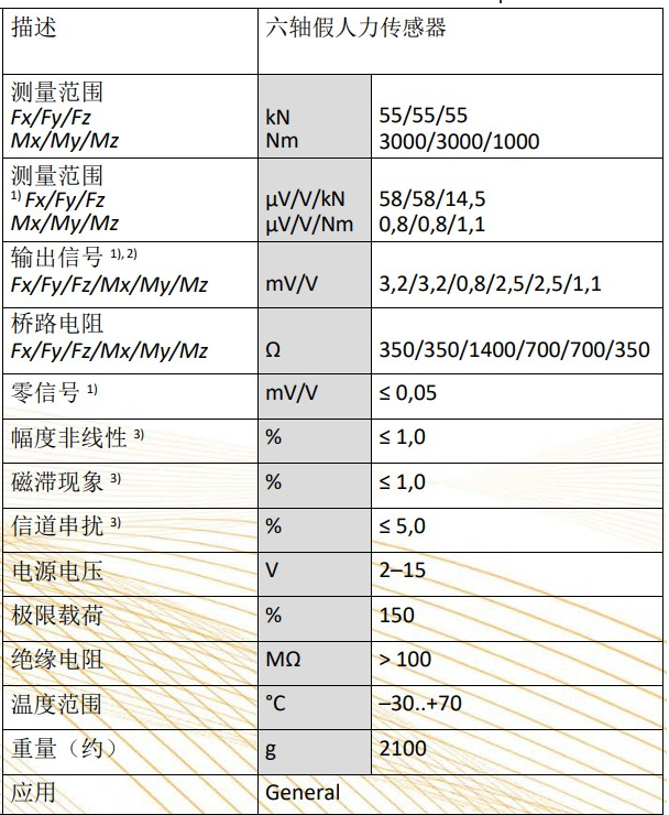 通用型六轴力传感器,可以测量碰撞测试中座椅受到的力 。六轴Fx,Fy,Fz,Mx,My,Mz方向测量,量程Fx=Fy=Fz=55KN,Mx=My=3000Nm,Mz=1000Nm。非线性 ≤1%。重量2100g。