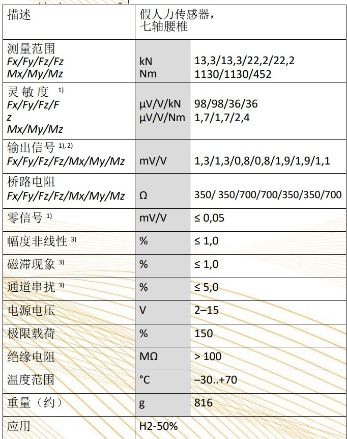 H2-50%假人腰椎力传感器,七轴Fx,Fy,Fz×2,Mx,My,Mz方 向测量,等同于Denton型号1708,FTSS型号IF-405,量程Fx=Fy=Fz=11.1KN,Mx=My=396Nm,Mz=226Nm ,非线性 ≤1%。重量500g。
