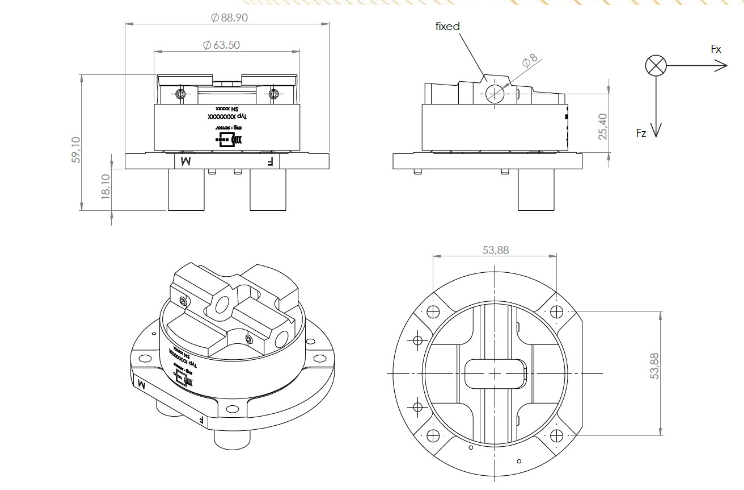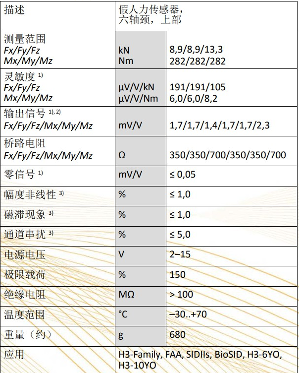 H3-5%, H3-50%, H3-95%,SIDIIs, H3-6YO, H3-10YO假人 上颈部力传感器,六轴Fx,Fy,Fz,Mx,My,Mz方向测量,等同Denton型号1716 ,FTSS型号IF-205,量程Fx=Fy=8.9KN,Fz=13.5KN,Mx=My=Mz=283Nm ,非线性≤1%。重量630g 。