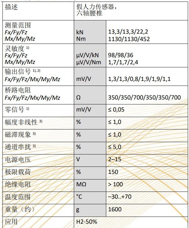 H2-50%,SIDIIs假人腰椎力传感器,六轴Fx,Fy,Fz,Mx,My,Mz方向测量,量程Fx=Fy=13.3KN,Fz=22.3KN,Mx=My=1130NM,Mz=450Nm ,非线性≤1%,重量1600g。