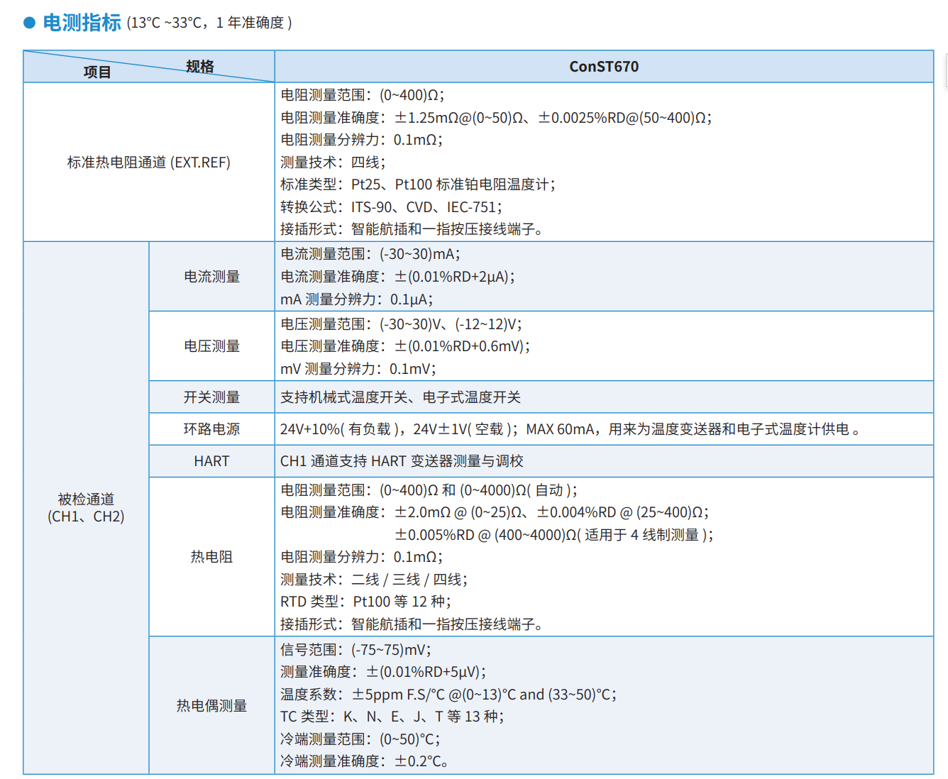 智能校准 , 升降温速度更快;■. (13 ~ 33)℃环境温度下,保证指标;■.三通道电测:一路标准 RTD 通道、两路被检通道;■.创新的一指按压接线技术,无需工具可快速完成被检接线