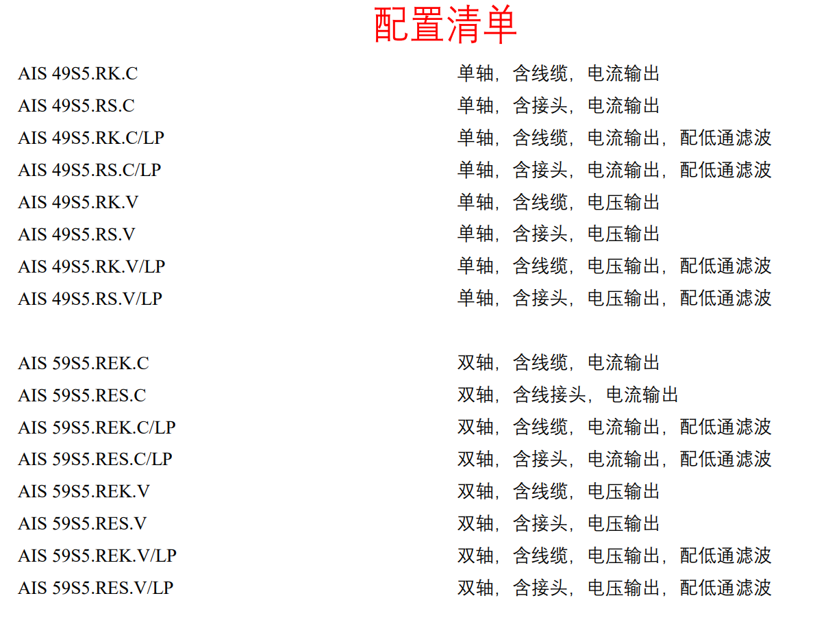 AIS 49S5/AIS 59S5 是一款特殊封装的振动/加速度传感器,为了避免产生旁生振动。IP67 级防护等级允许 应用在低水压环境中。该传感器多种可选,单轴或双轴,电压或电流输出,以及低通滤波。