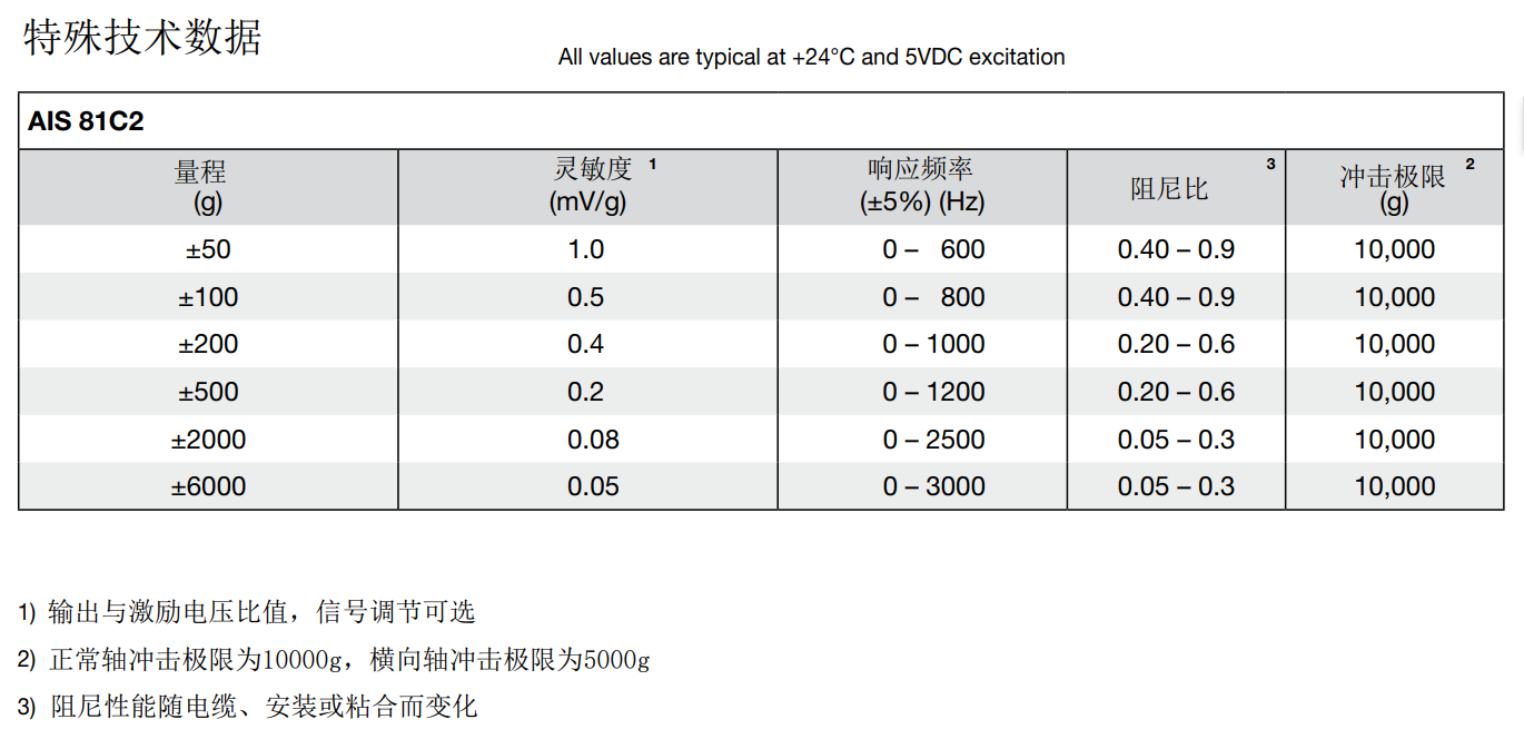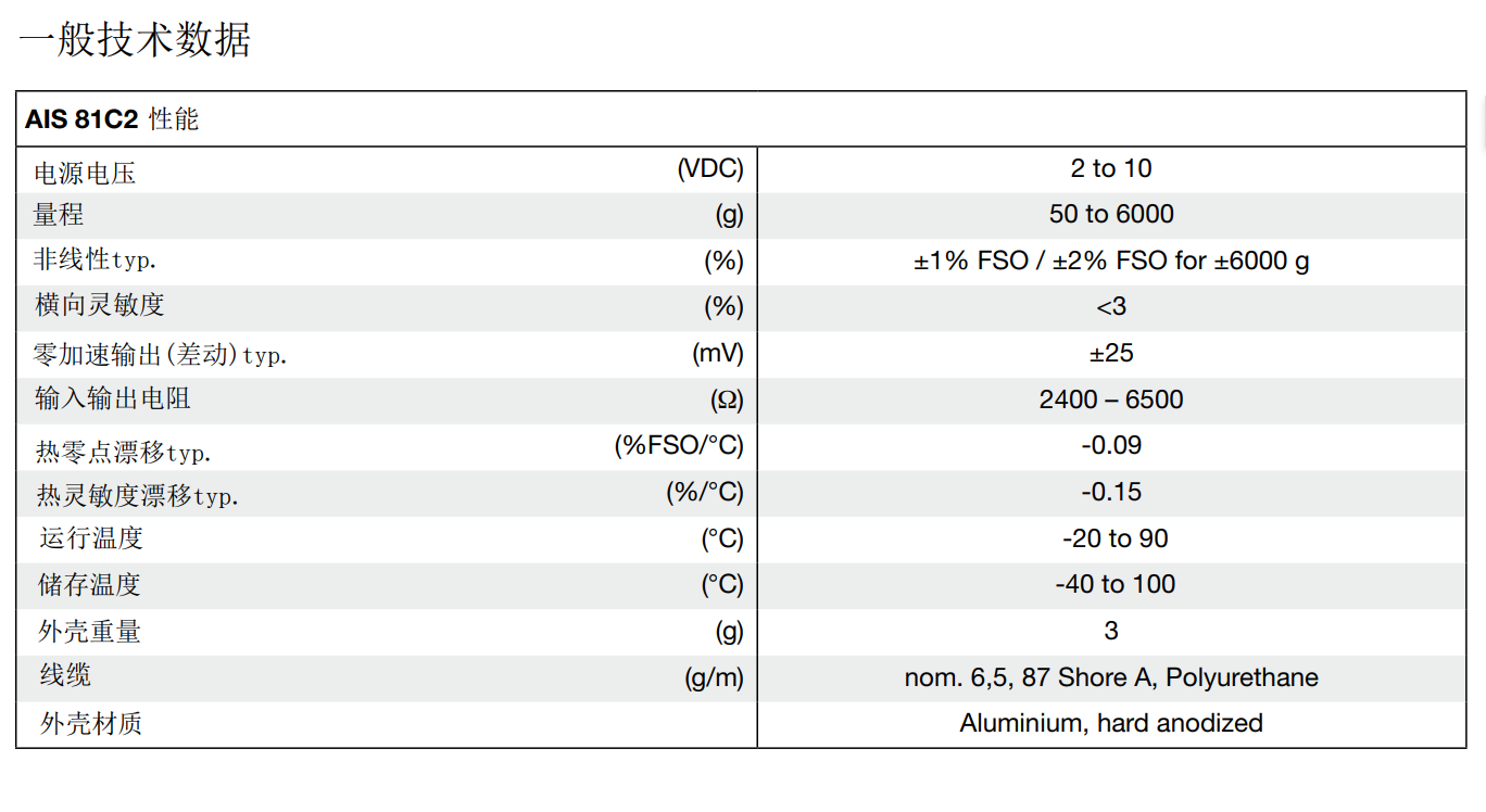 AIS 81C2型加速度传感器是一种小型、紧凑的单轴装置,设计用于车辆碰撞和道路测试。该传感器的量程从±50g到±6000 g,具有高频率响应,易于安装在被测车辆难以到达的位置。该传感器提供毫伏输出信号,并具有机械过载保护,提供冲击保护负载超过10,000 g。电信号的变化与引入的振动成正比。