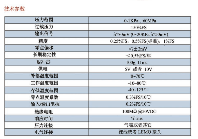 嘉倍科技生产的车门压力传感器(Door Pressure Sensor) DPS采用了微型化设计的微机械加工工艺制成集成压阻力敏元件, 进行精致巧妙的封装,通常外径在φ3mm到φ12mm之间, 长度不超过25mm,并且可以根据客户要求的形状与尺寸进行定制。 该车门压力传感 器以其小巧的外形、 mV输出、 高温、 优异的动态和静态特性以及极高的可靠性可以用于需 要动态测试的环榄中。
