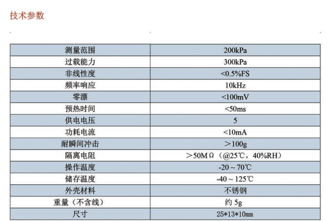车门压力传感器可以用于检测汽车碰撞试验中车门内气压的变化,其体积小巧适合安装门板狭小密|洒的空间内。