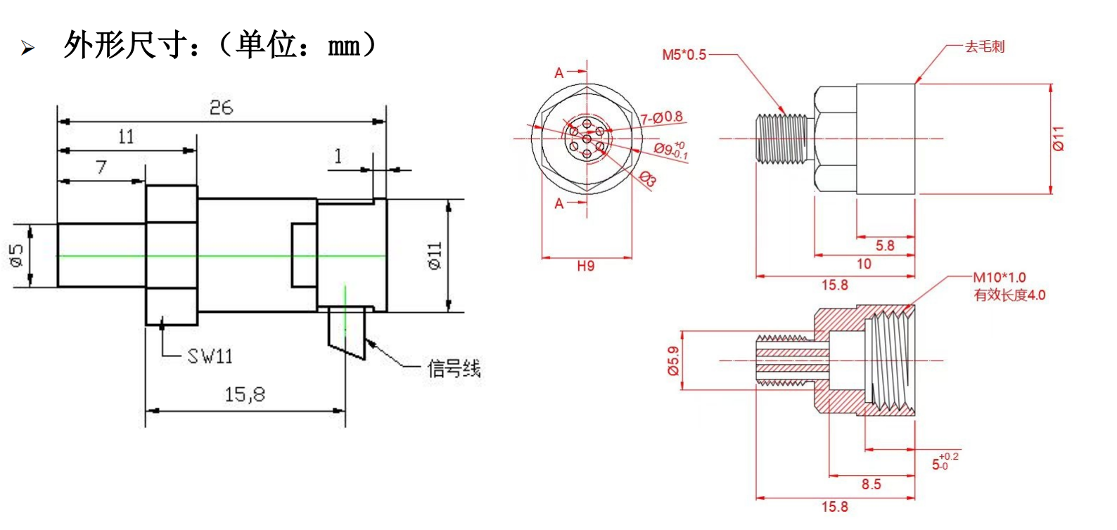 常小,最小直径只有 4mm,体积小、重量轻、结构紧凑,调理电路经过宽带放大、归一化处理,稳定性好、可靠性高、